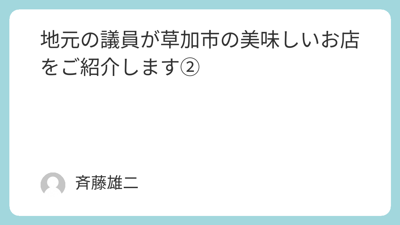 「地元の議員が教える草加市のおいしいお店」第2回は、麺屋時茂さんをご紹介します。