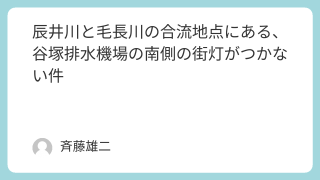 活動報告 辰井川と毛長川の合流地点にある、谷塚排水機場の南側の街灯がつかない件